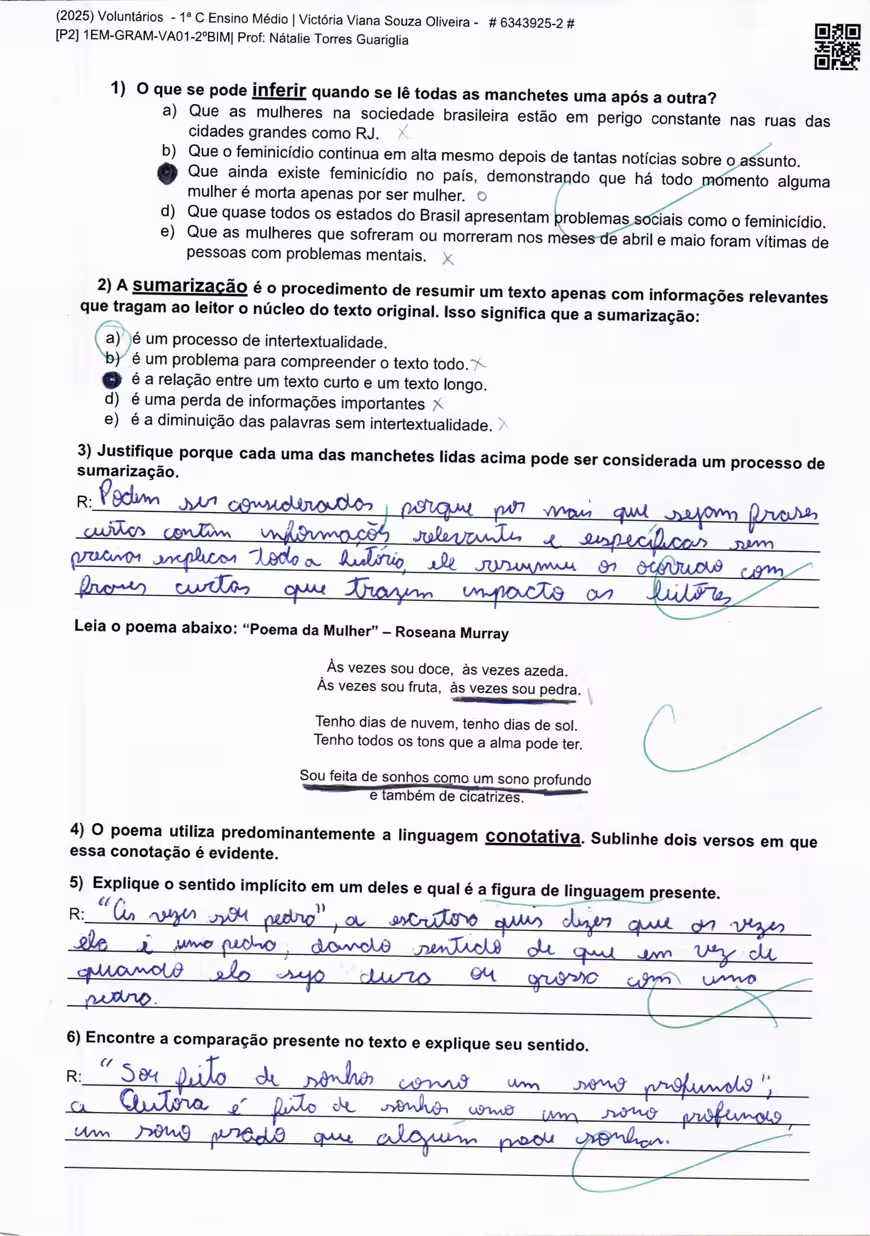 Enviada por: Eduardo Avila Guerra Junior - BiologiaCorrigi a atividade de Língua Portuguesa / Gramática: 1EM-GRAM-VA.ARB-1ºBIM, aplicada na data 09/04/2025 na turma 1ª C. Sua nota foi 3,00 de 10,00.